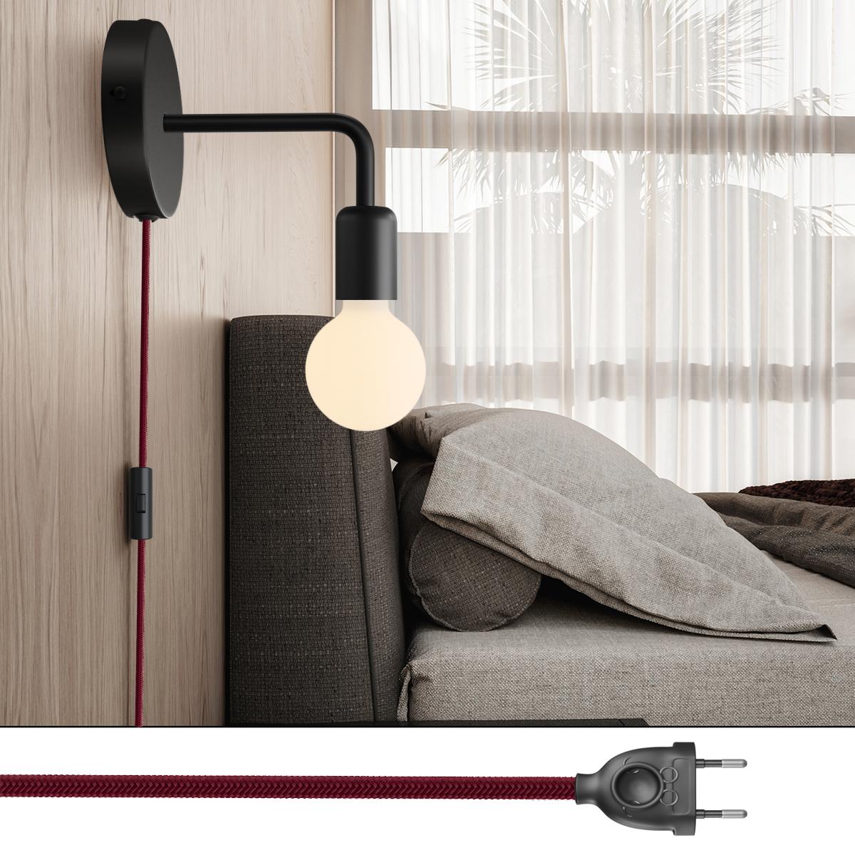 Cavo tessile : 2.37mt. [XZ2RM19] Cavo elettrico in tessuto Bordeaux - L'Originale Creative Cables, per lampade e lampadari - RM19 - N° of cores: 2x0.75