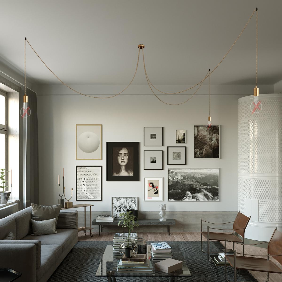Porte-lampe : 3ème bras : 1X [KBM4011OTSTERM] Kit douille E27 cylindrique en métal - Cable clamp: Cylindrical, Finition: Brushed bronze